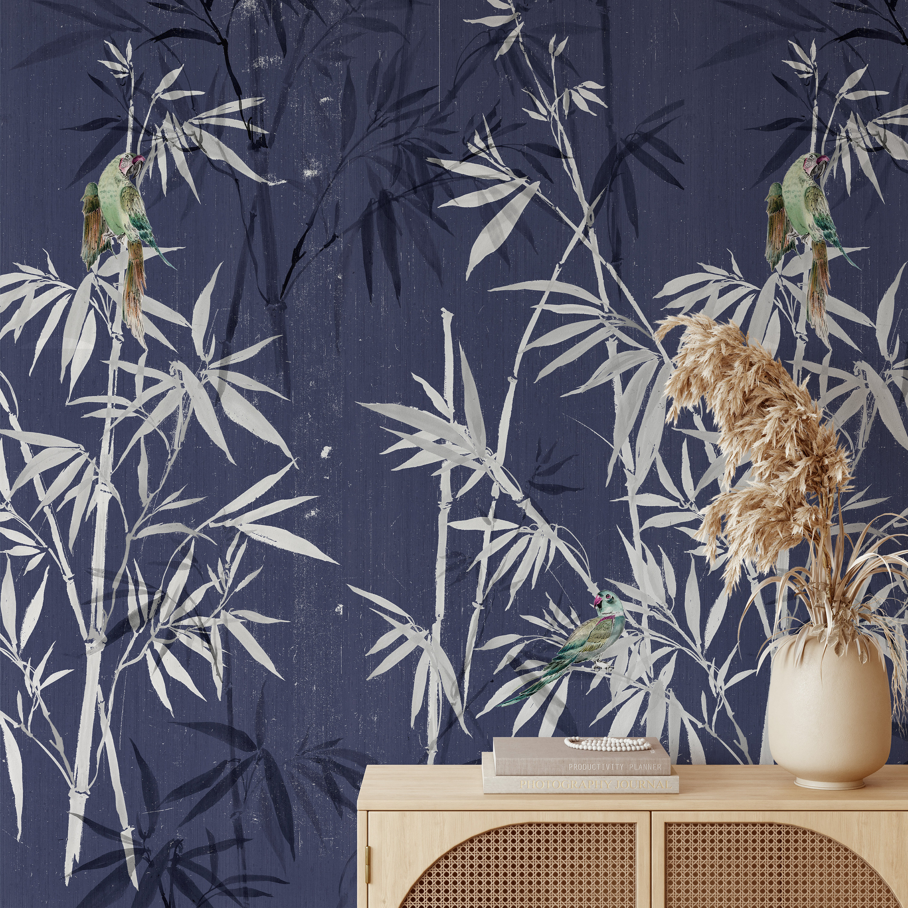 Crafted from high-quality, durable materials, this wallpaper measures to fit various wall sizes and is easy to install and maintain. Its detailed bamboo and parrot motifs enhance natural light and create a calming atmosphere, ideal for living rooms, bedrooms, or meditation spaces. The wallpaper is scratch-resistant and simple to clean, making it a practical choice for long-lasting style.