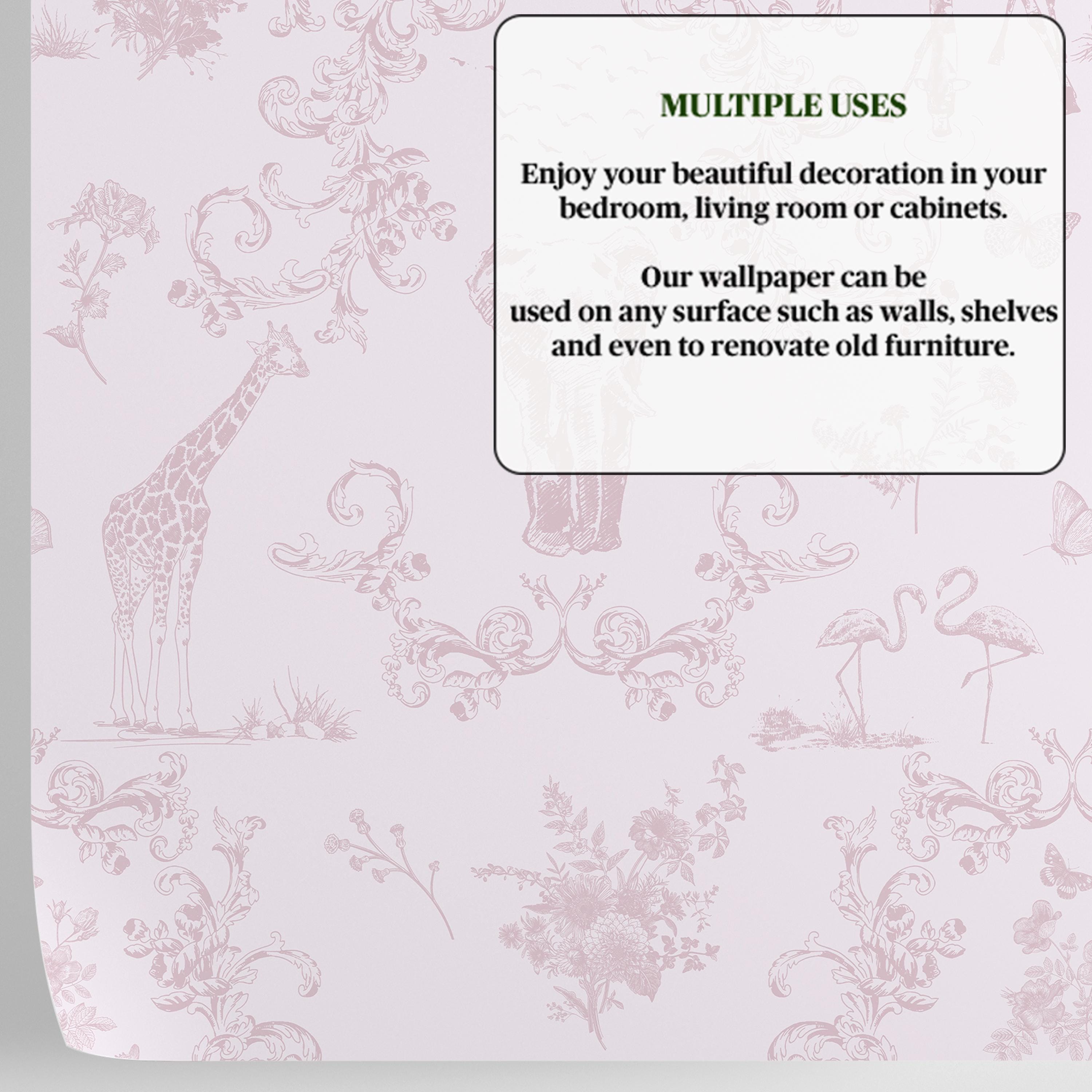 Pink Safari Toile de Jouy Wallpaper – Wildlife & Floral Motifs (Pre-Cut Sheets)