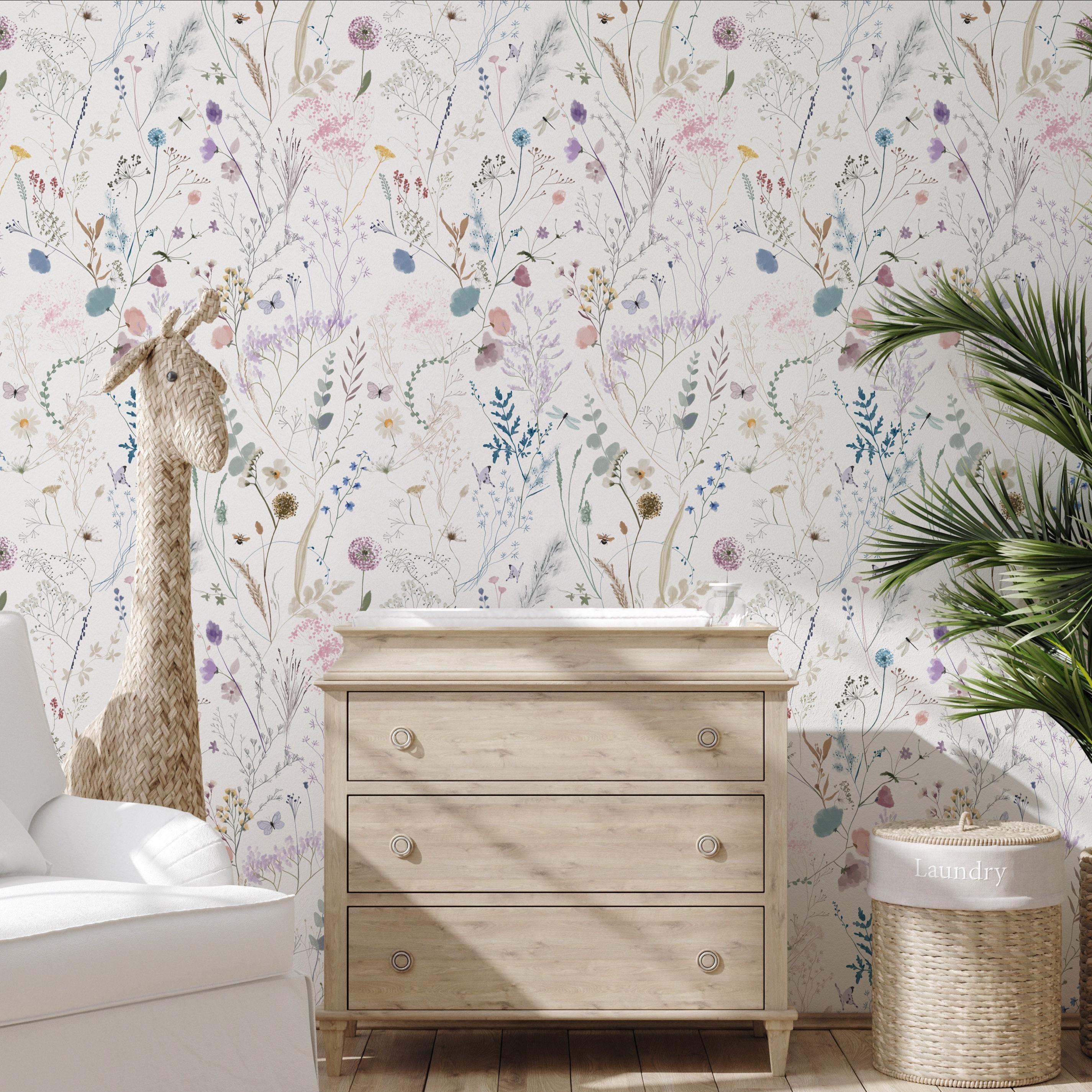 Pair with linen textiles, natural wood furniture, and dried flower arrangements for a complete cottagecore look. This design also works beautifully as a full room wrap — the light tones keep the space open and bright.
