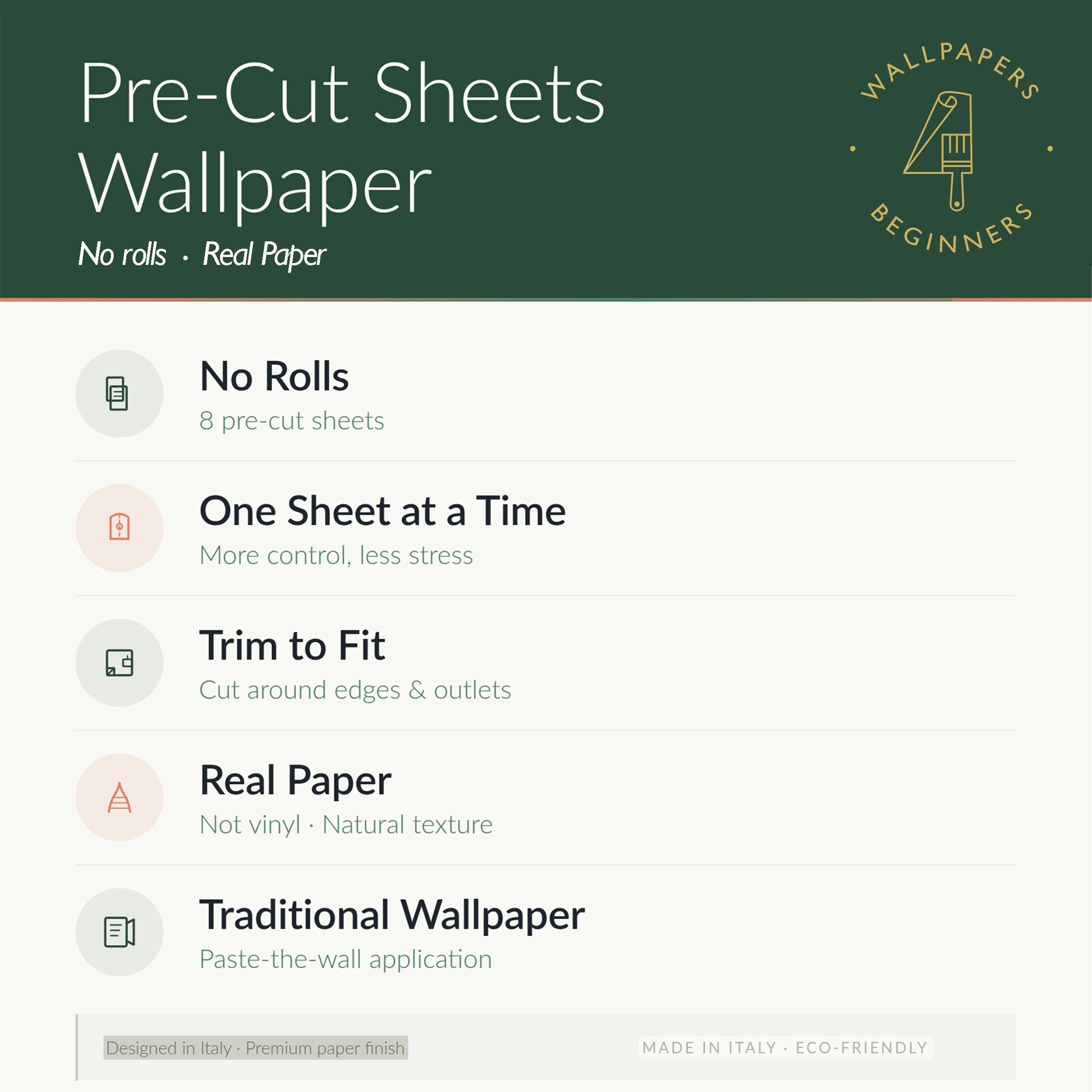 Each set contains 8 PAPER SHEETS 115 gr. Each sheet measures 27,56" x 39,37" (70 x 100 cm). Each set covers 59.20 ft² (5.5 mq).
